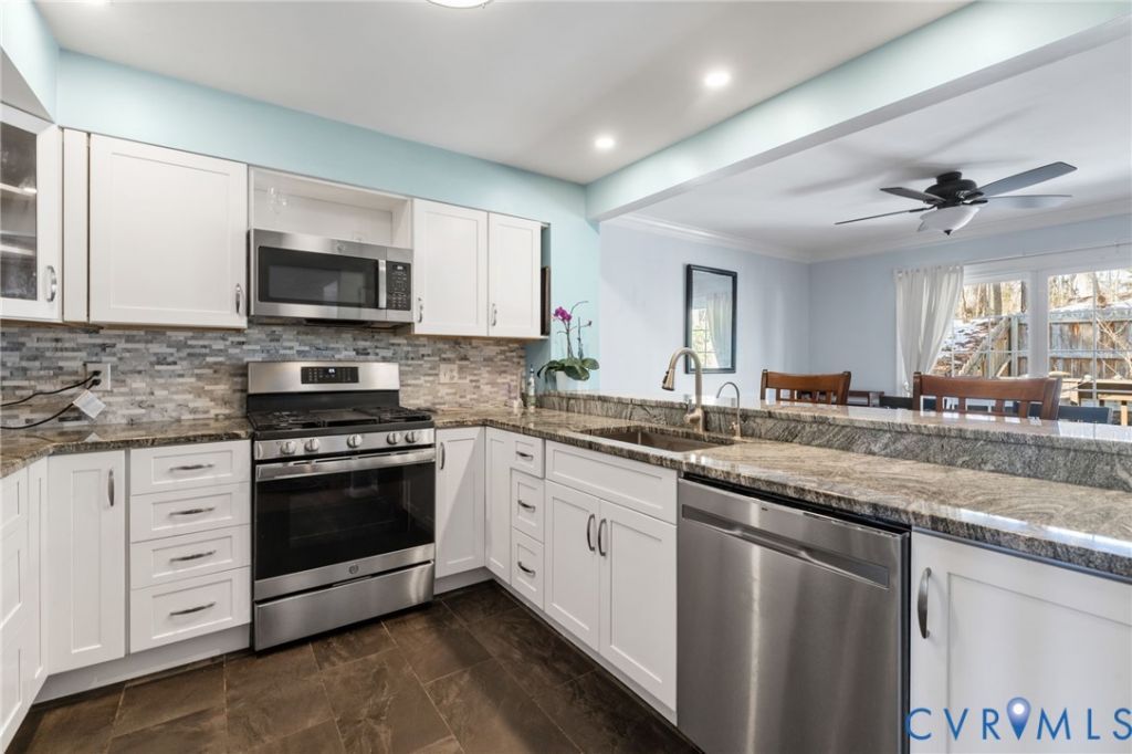 NEW PRICE! This stunning, move-in-ready townhome is located just steps from the Southampton Recreation Association and a scenic pedestrian trail leading through the woods to the James River and Pony Pasture. From the moment you step inside, you'll notice the stylish upgrades and airy, open layout. Sliding glass doors off the dining area open to a serene, private backyard retreat. The renovated kitchen showcases granite countertops and stainless-steel appliances. The inviting living space features a cozy gas fireplace, beautiful wood floors, an updated half bath, and practical storage tucked beneath the stairs. Upstairs, you'll find new wood flooring throughout. Both bedrooms offer ensuite baths, including a luxurious primary suite. The second ensuite bath has been recently updated. The one-car garage is equipped with a refrigerator, along with new storage systems and bike racks. A new HVAC system was installed in 2024. Unwind on the back deck overlooking the professionally landscaped yard. The HOA fee includes roof repair and replacement, siding maintenance and replacement, gutters and downspouts maintenance and replacement, most lawn care , and more. This exceptional home truly checks every box.
